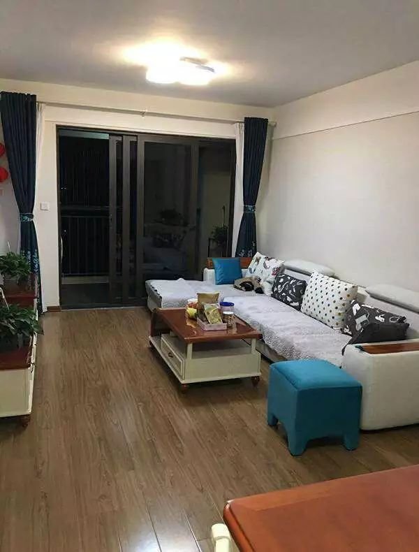 还没买电视机拍摄的,客厅和餐厅相连,显得很宽敞,整个空间挺简约的。