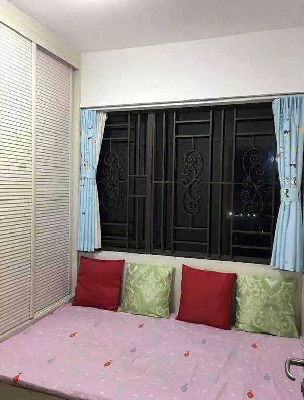 次卧是用来接待客人的房间,也是相当于给父母的房间,他们偶尔过来小住也有一个休闲的地方。这个房间里用了榻榻米,百叶的衣柜门给房间提升了不少的层次。粉红色的床垫,搭配抱枕,更显得有老一辈人的生活方式。